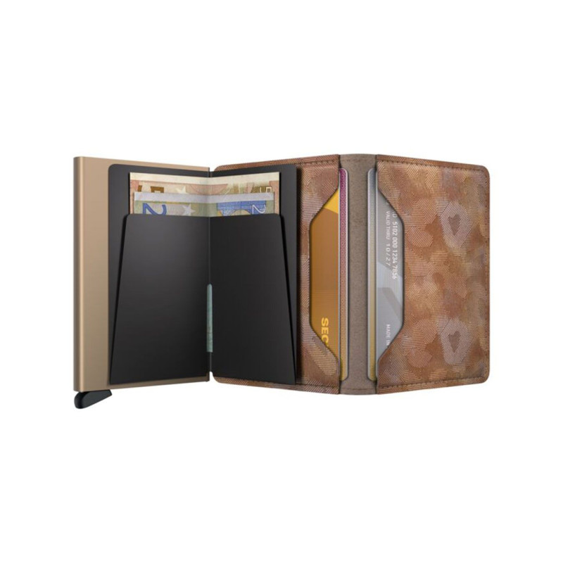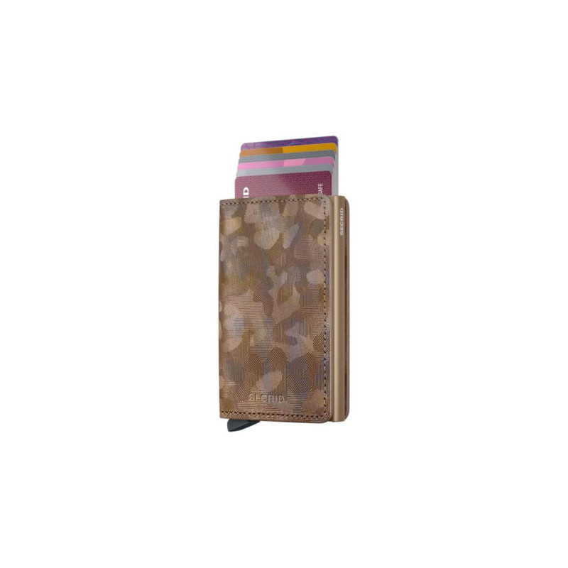 SECRID Slimwallet Jungle - įspūdingas įvairiaspalvis kamufliažinis reljefas, pagamintas iš aukštos kokybės europietiškos karvės odos.