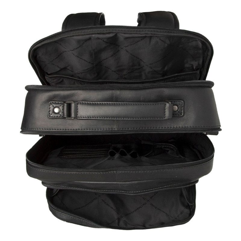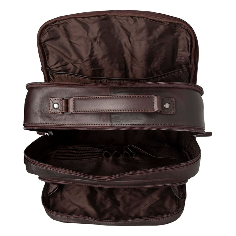 Stilinga ir praktiška The Chesterfield Brand odinė kuprinė Lennox – puikus pasirinkimas darbui, kelionėms ar kasdienai. Du pagrindiniai užtrauktuku užsegami skyriai talpina kompiuterį (iki 15"), dokumentus, asmeninius daiktus bei smulkmenas. Viduje rasite skyrelius telefonui, kortelėms, rašikliams, o išorėje – papildomas užtraukiamas kišenes priekyje, šonuose ir nugaroje. Sustiprinta nugaros dalis, paminkštintos reguliuojamos petnešos ir tvirtinimo dirželis lagamino rankenai užtikrina patogų naudojimą. Pagaminta iš aukštos kokybės vaškuotos odos, kuri laikui bėgant įgauna natūralią spalvą ir unikalų charakterį.