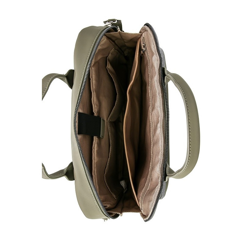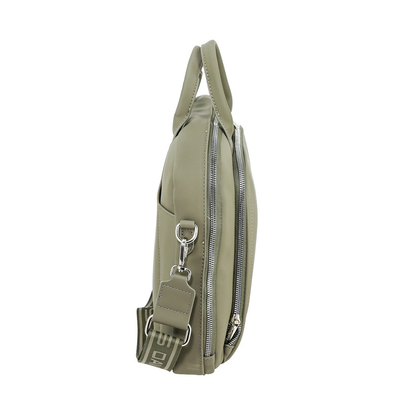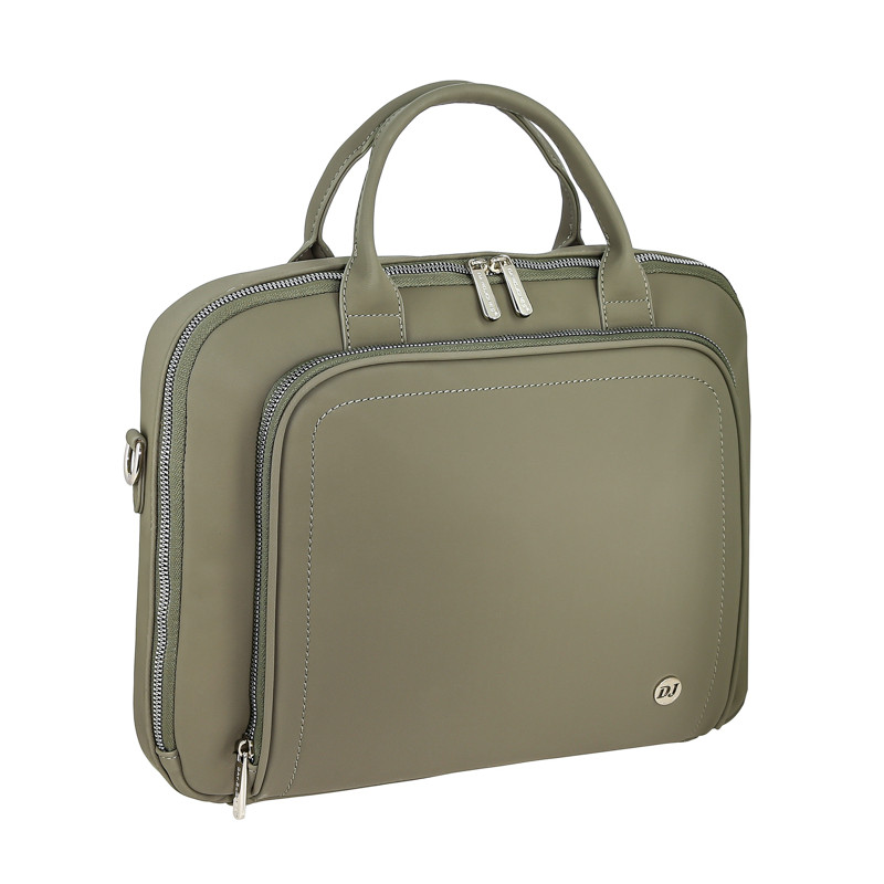 Dėklas turi erdvų pagrindinį skyrių, kuriame telpa A4 formato dokumentai ir nešiojamasis kompiuteris. Viduje rasite paminkštintą skyrelį kompiuteriui, užsegamą kišenę bei kelias atviras kišenėles smulkiems daiktams. Priekyje – patogi išorinė kišenė su užtrauktuku. Pridedamas ir reguliuojamas peties dirželis, todėl jį patogu nešiotis tiek rankoje, tiek per petį.