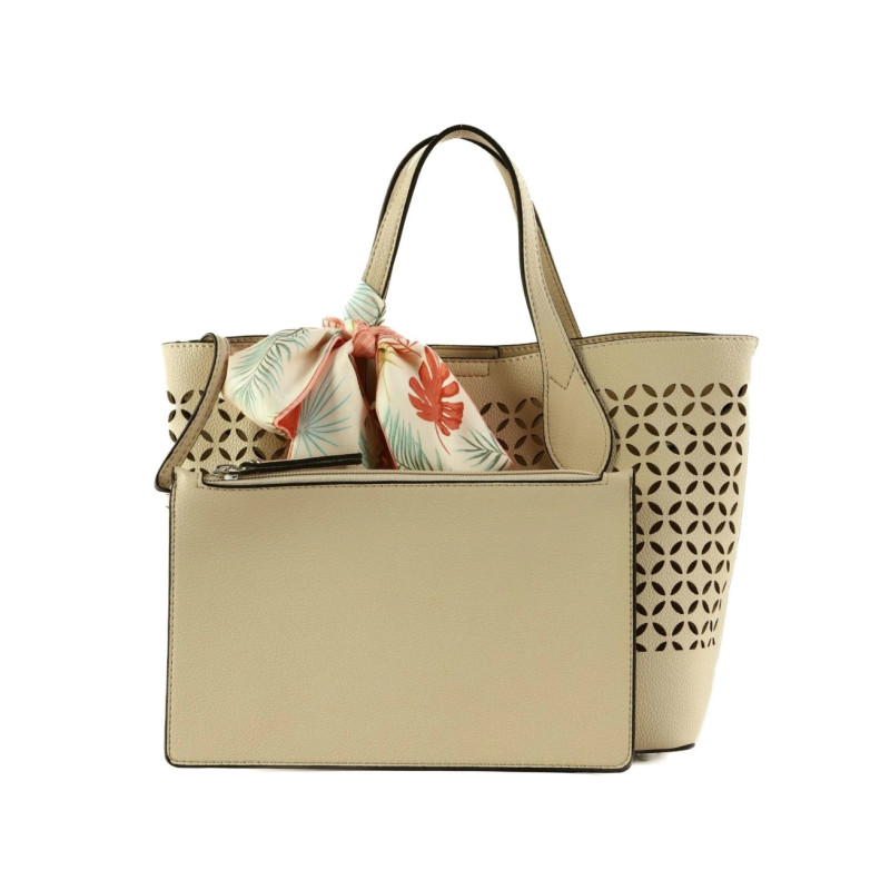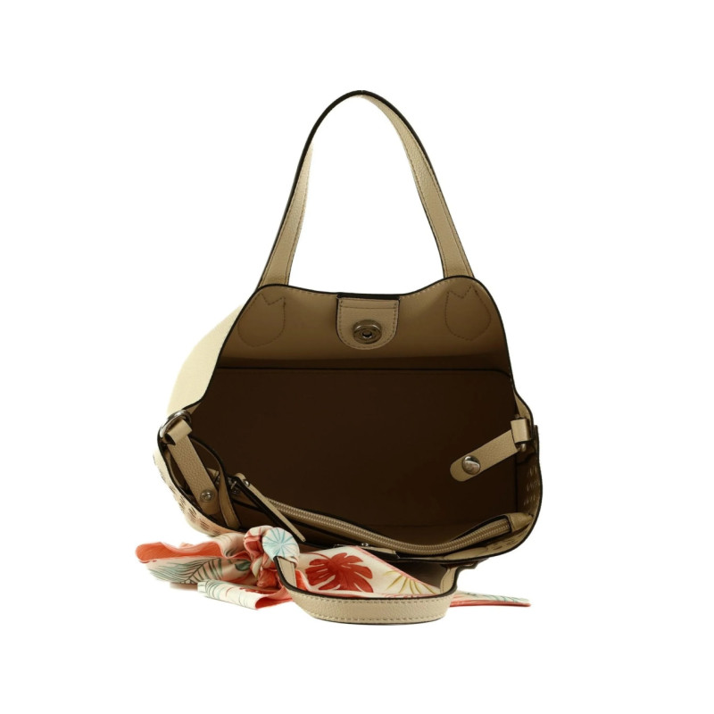 Rankinę galima nešioti už dviejų rankenų arba ant peties su nuimamu ir reguliuojamu dirželiu. Komplekte taip pat yra dekoratyvinė skarelė, kuri suteikia papildomo stiliaus akcento.