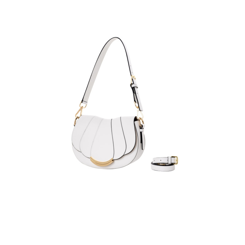 CROMIA  Melia „Cacciatora“ krepšys, pagamintas iš lygios veršiuko odos, su vingiuotu deriniu, šviesiai auksiniu pusmėnulio formos aksesuaru.